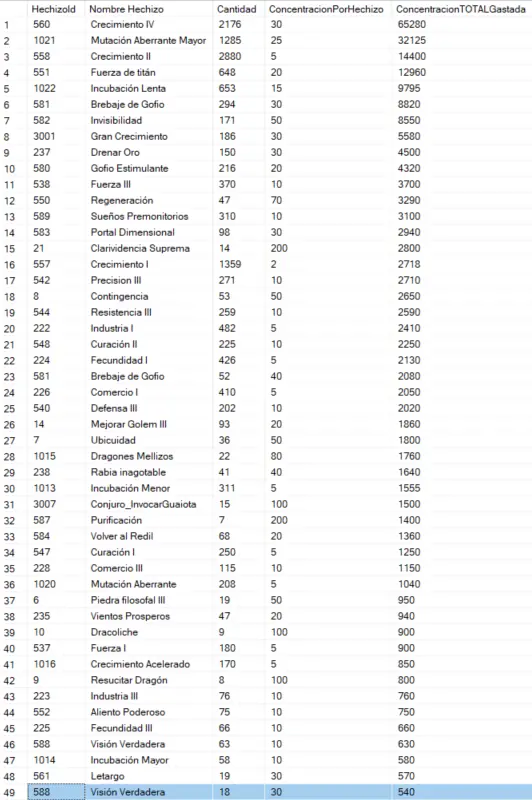 1. Top gasto de concentración por hechizo