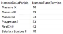 Sacando la media de turnos que tardaron en terminarse las partidas que se jugaron la media es de: 39.571428 turnos.