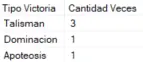También mirando como se han ganado cada partida podemos ver que la victoria por Talismán es la mas común