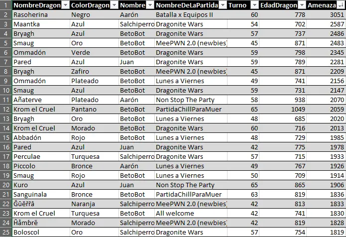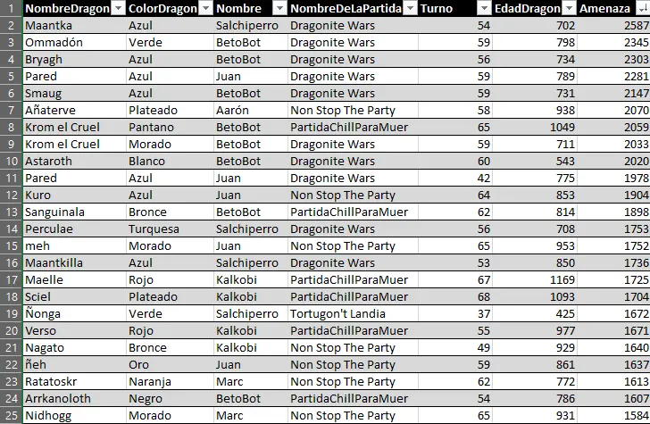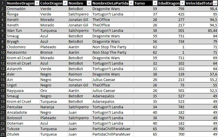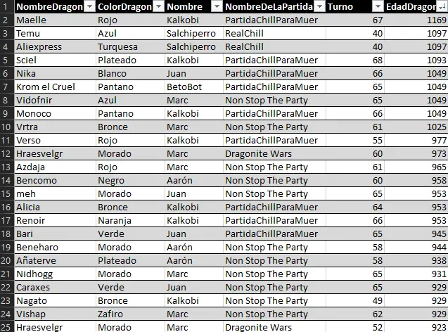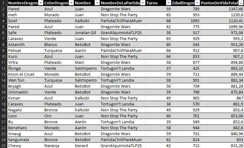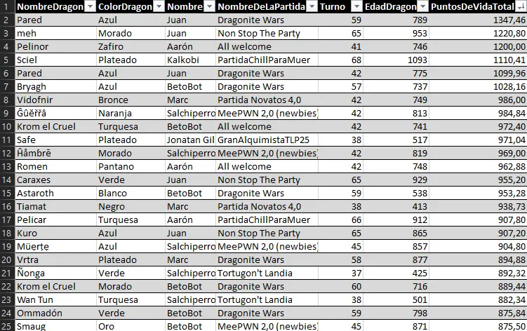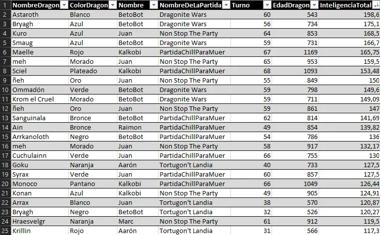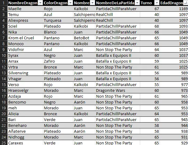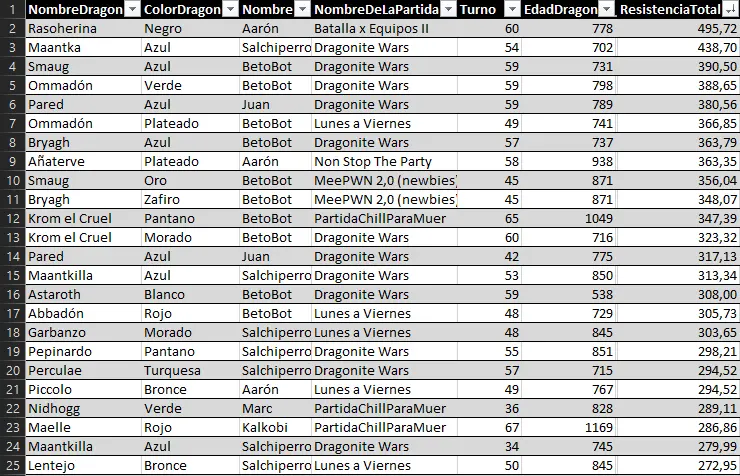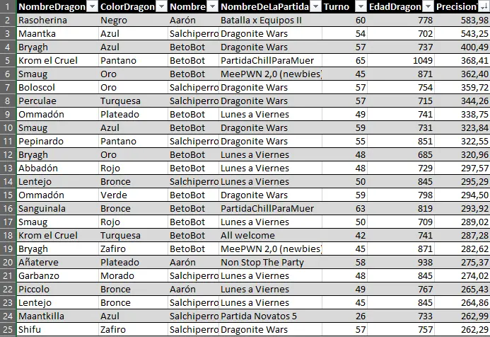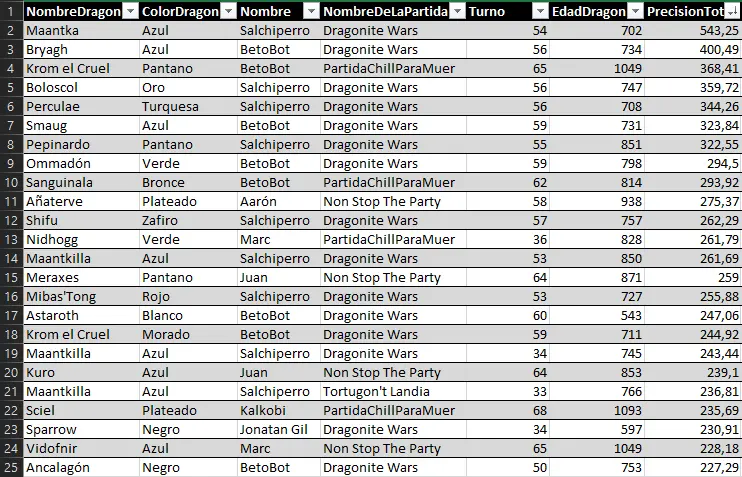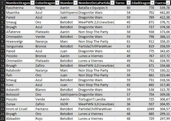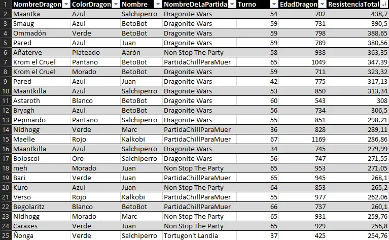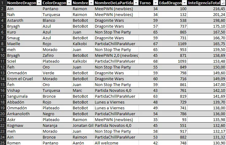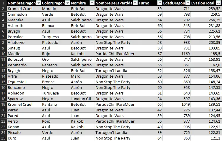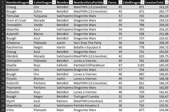 Here we can highlight the anomaly of Raimon's dragon Myrrh, who, at just 127 years old, achieved a very respectable 157 evasion points. He has achieved the feat of being the first dragon under 500 years old to enter a top 25 stats list.
