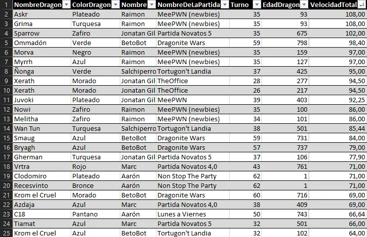 Now for the speed stats ranking. This is the weirdest ranking because the winner is a 93-year-old dragon, Askr from Raimon, and it's also the first ranking on this blog to include 1-year-old dragons. Yes, you heard right, a newborn hatchling has made it into the ranking of the fastest dragons of all time in Cladia.