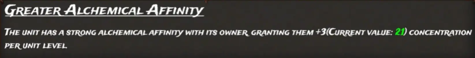 | Dragon Age | Tier Unit | Lesser Alchemical Affinity's Concentration | Alchemical Affinity's Concentration | Greater Alchemical Affinity's Concentration |